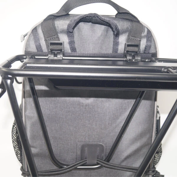 The Urbanator bag is ideal for cyclists and commuters for taking their stuff around town or on some journey. This backpack-style bag has ample room for 2 days of clothes, an extra pair of shoes, and a 16″ laptop. It features a padded laptop compartment and two additional pockets for small electronics or sunglasses, and 2 bottle holders. The bag’s attached shoulder straps conveniently tuck away into a built-in storage pouch and are out of the way while mounting to a bike rack. The Urbanator mounts to most bike racks and has locking features to keep your bag secure. Made of water-resistant and easily cleanable material with an added weather-resistant rain fly.
