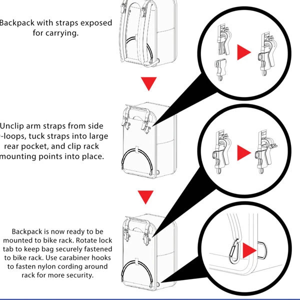 Converts from pannier to backpack in seconds! Designed by cyclists for cyclists!