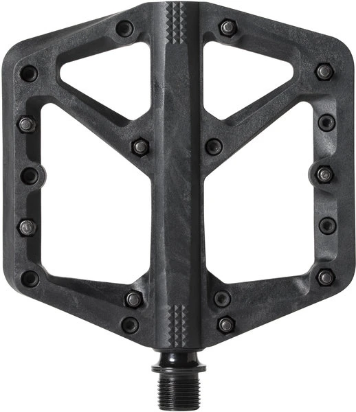 Size specific composite platform pedal with optimal shoe/pedal interface.