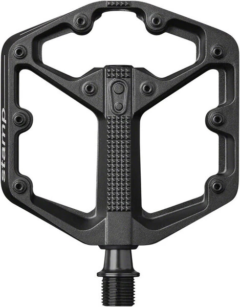 Size specific magnesium platform pedal provides optimal shoe/pedal interface.