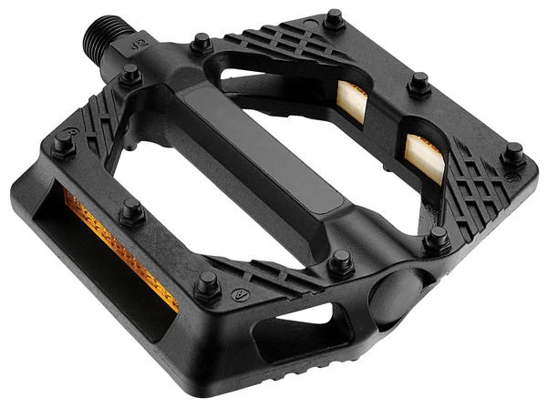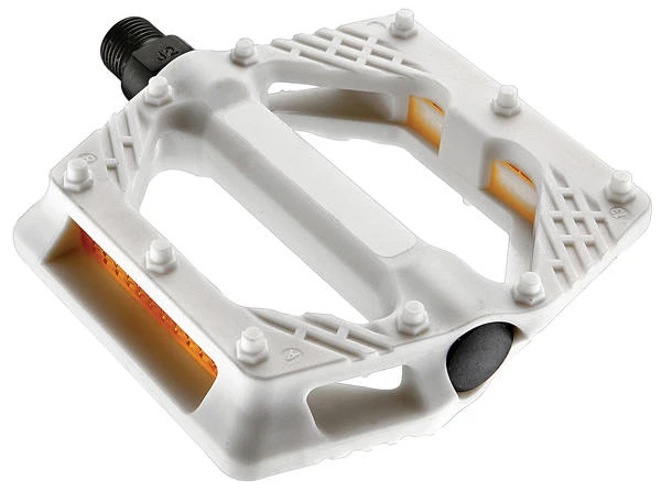 Giant’s Plastic Platform Pedals boast light and durable fiber-reinforced nylon bodies with wide, low-profile platforms and 10 molded pins per side for an excellent grip. You also get tough chromoly axles, quality bearings, and reflectors for visibility.