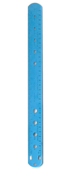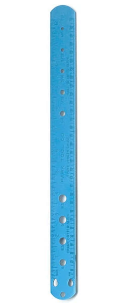 This handy shop aid is ideal for sizing spokes, ball bearings, and crank cotters. To use, just hang the head of the spoke in the oblong hole and read its length on the scale. For crank cotters and ball bearings it works just like a gauge for drill bits.