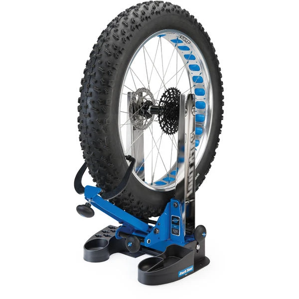 Securely holds any of Park’s TS-2, TS-2.2, and TS-2.2P Professional Wheel Truing Stands and tilts 20 degrees from front to back for comfortable wheel work and sight lines at any bench height. Features a wide, sturdy base, small parts compartments, spoke wrench holders, and is constructed of a durable composite material.