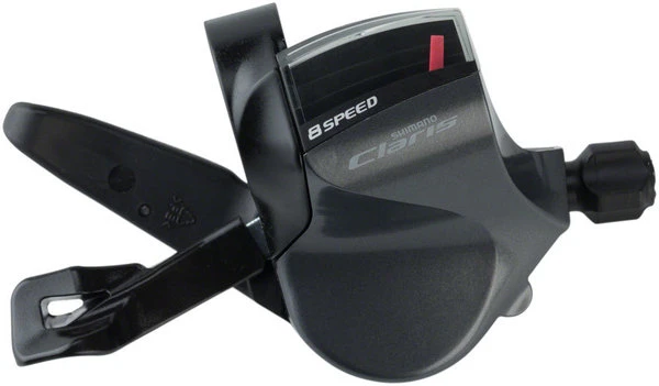 Shimano Rapidfire Plus flatbar shift levers for road and fitness bikes. Compatible with 2×8 and 3×8 Claris R2000 components. The levers are also equipped with 2-Way Release for different riding styles or shifting (index finger or thumb) from various riding positions. The upper lever still performs the same function, but it swings both ways. Pull it with your finger or push it with your thumb—you choose.