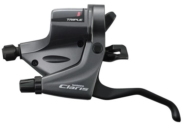 The Claris Rapidfire Plus shift/brake lever offers an elegantly integrated solution for braking and shifting 2×8 or 3×8 drivetrains. Its optical gear display lets you know what gear you’re in, and the reach adjust brake lever allows you to dial in the brake lever ergonomics.