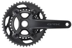 Shimano’s new FC-RX600-11 crank balances weight and efficiency for mixed-terrain riding. Gearing options cater to the specific demands of gravel riding, with tighter gear steps for maintaining optimum pedaling cadence. The 2×11-speed crank is available in a 46-30T or 40T chainring combination and 170, 172.5, and 175mm crank arm lengths.
