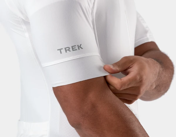 Raw-cut sleeves with silicone-printed grippers provide a comfortable fit that stays put.