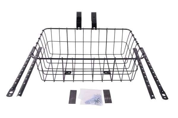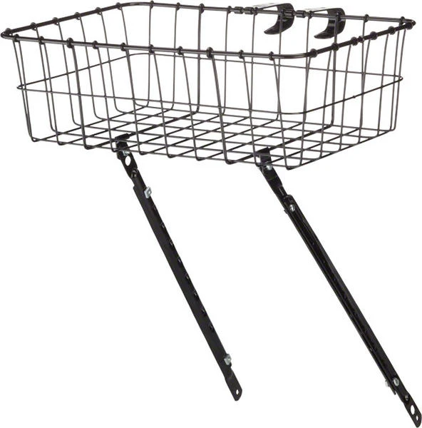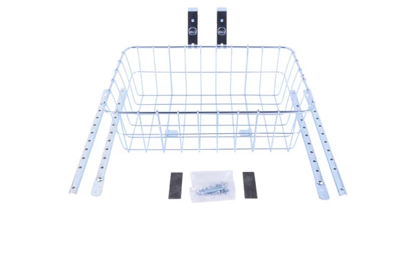 – Baskets have 2-piece legs which extend from 14 inches to 22 inches and mount to either the axle or fork eyelets on bikes with quick release front hubs