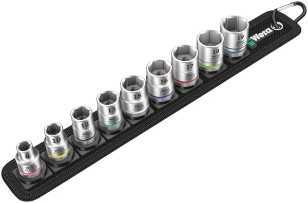 – 9-piece socket set on a robust textile belt, 3/8