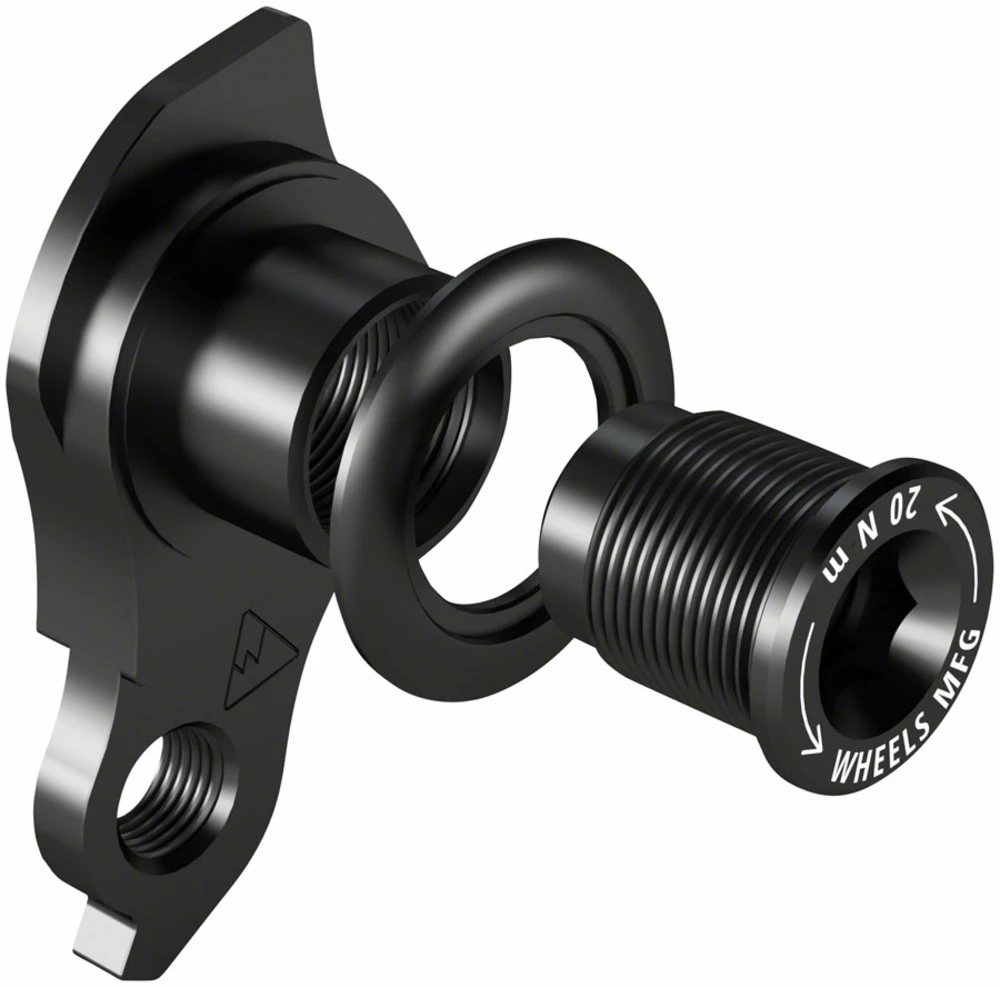 Wheels Manufacturing’s SRAM compatible Universal Derailleur Hanger simplifies thousands of hanger designs into one universal standard. Machined completely out of aluminum, this new hanger is not only strong but designed to rotate backward and slip slightly in the case of an impact preventing chain jams and protecting the drive train. All Wheels Manufacturing replacement derailleur hangers are produced in our Colorado shop to exacting tolerances.